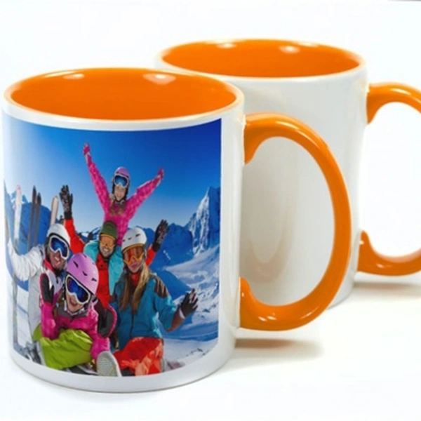 These two-tone sublimation mugs have a white exterior with a white handle and interior. The two-tone design provides a striking contrast and visual appeal, making it a popular choice for personalised gifts, promotional items, and custom branding.